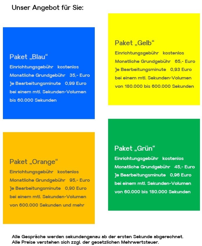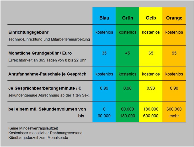 Alle Gespräche werden sekundengenau ab der ersten Sekunde abgerechnet. Der